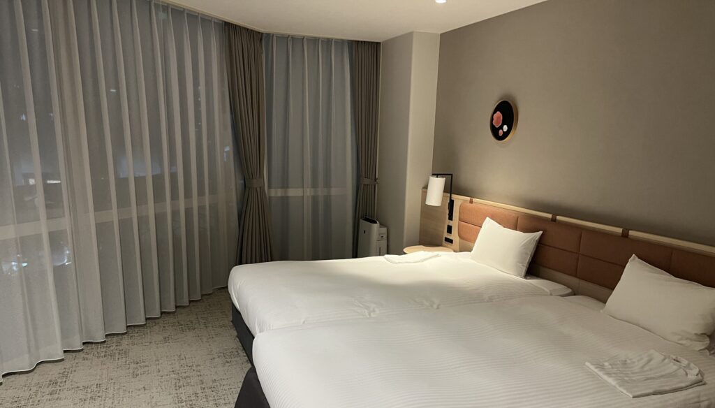 今回宿泊したのは角部屋のツインルーム。 部屋に入った瞬間、「思っていたより広い」というのが正直な感想でした。