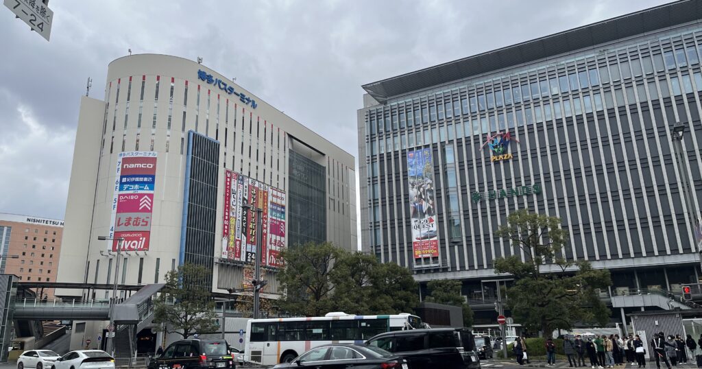この日は日曜日。博多駅周辺は午前中から観光客で賑わっており、KITTE博多にある人気ラーメン店「博多らーめん ShinShin」を目指しましたが、10時50分時点で1時間以上待ちとの案内があり断念。到着直後で体力も温存したかったため、無理に並ばず別のお店に切り替える判断をしました。