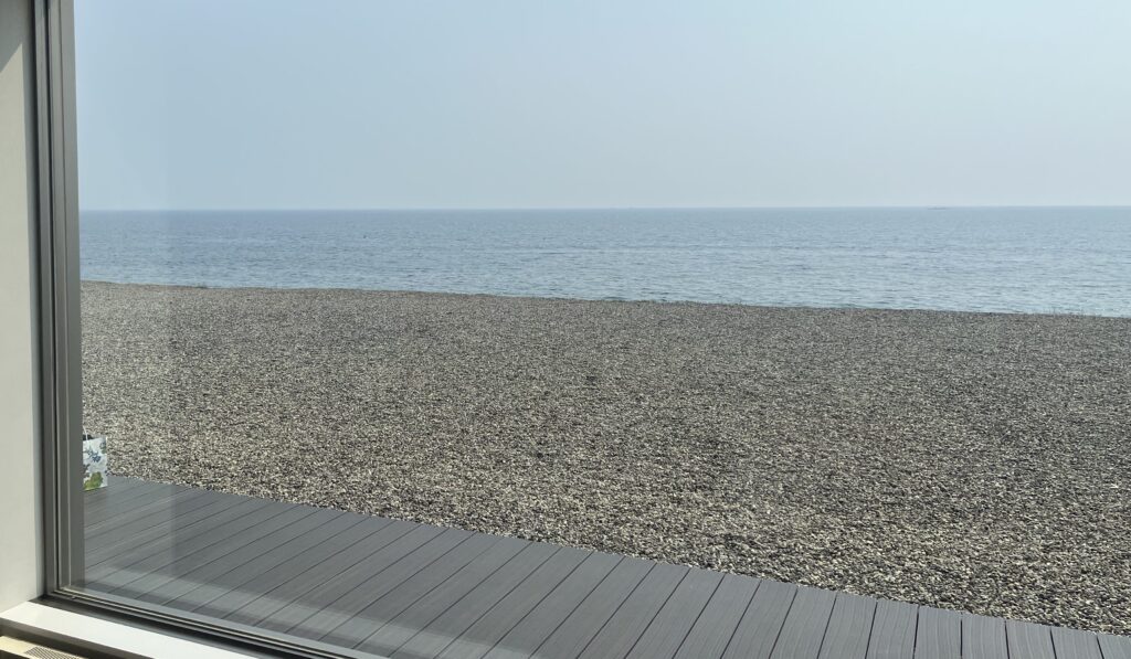 待ち時間の間はテラスに出ることができ、海を眺めながら過ごせます。開放感があり、待ち時間もそれほど苦になりませんでした。